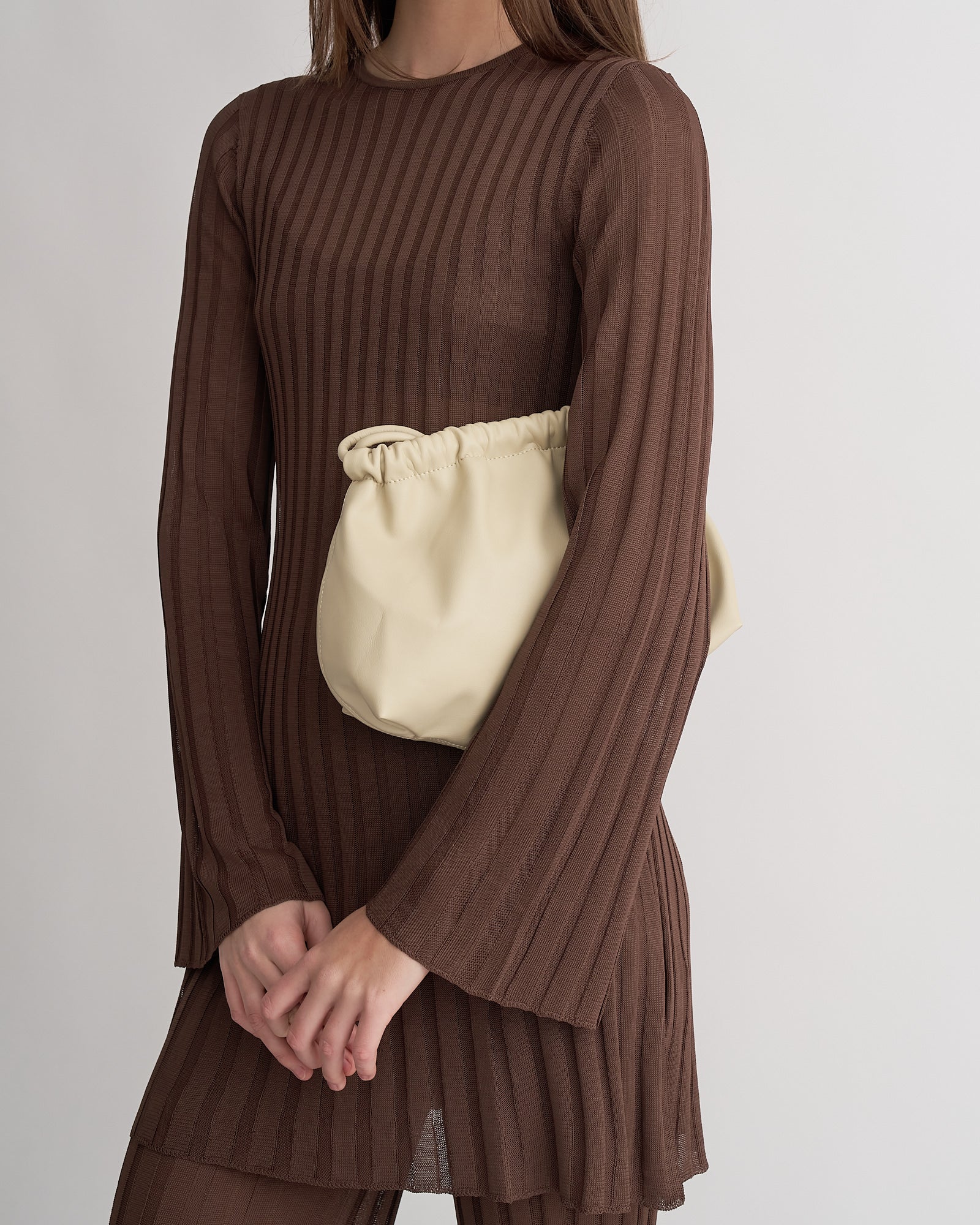 The Alma Bag is our coveted signature style, named after the Spanish almeja and defined by its softly contoured, clamshell shape. Designed to be worn on the shoulder, crossbody, or handheld as a clutch, this bag embodies ease and sophistication.