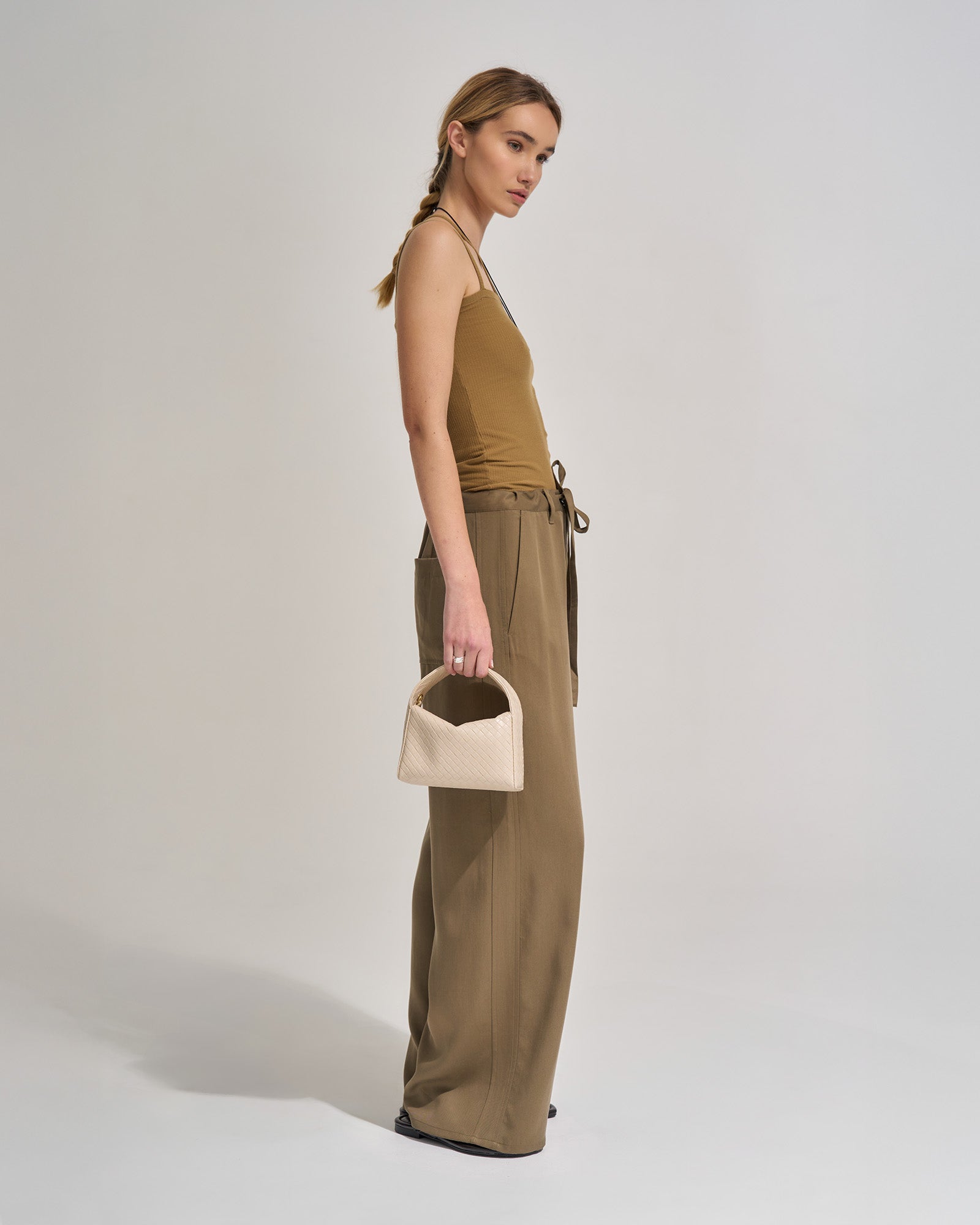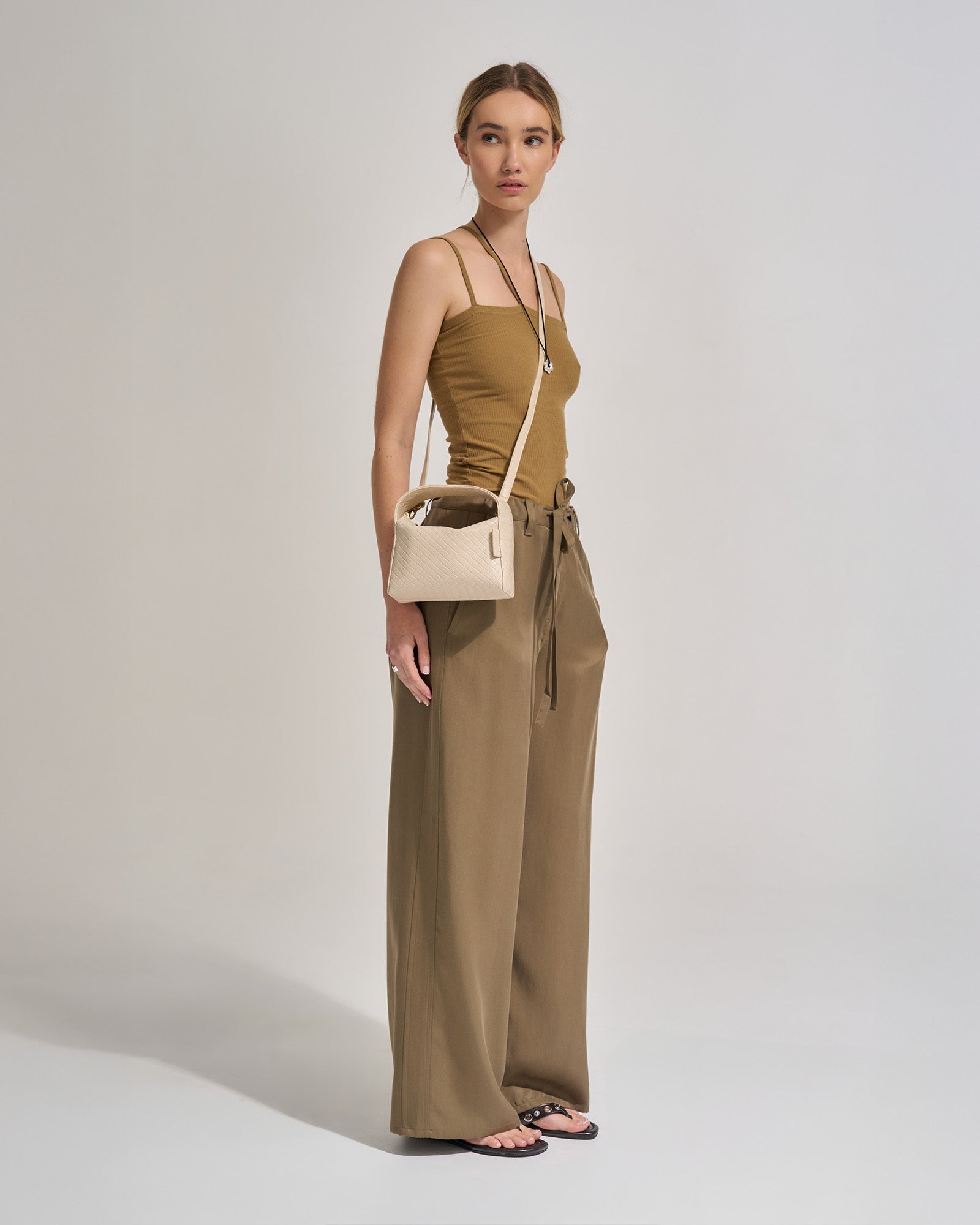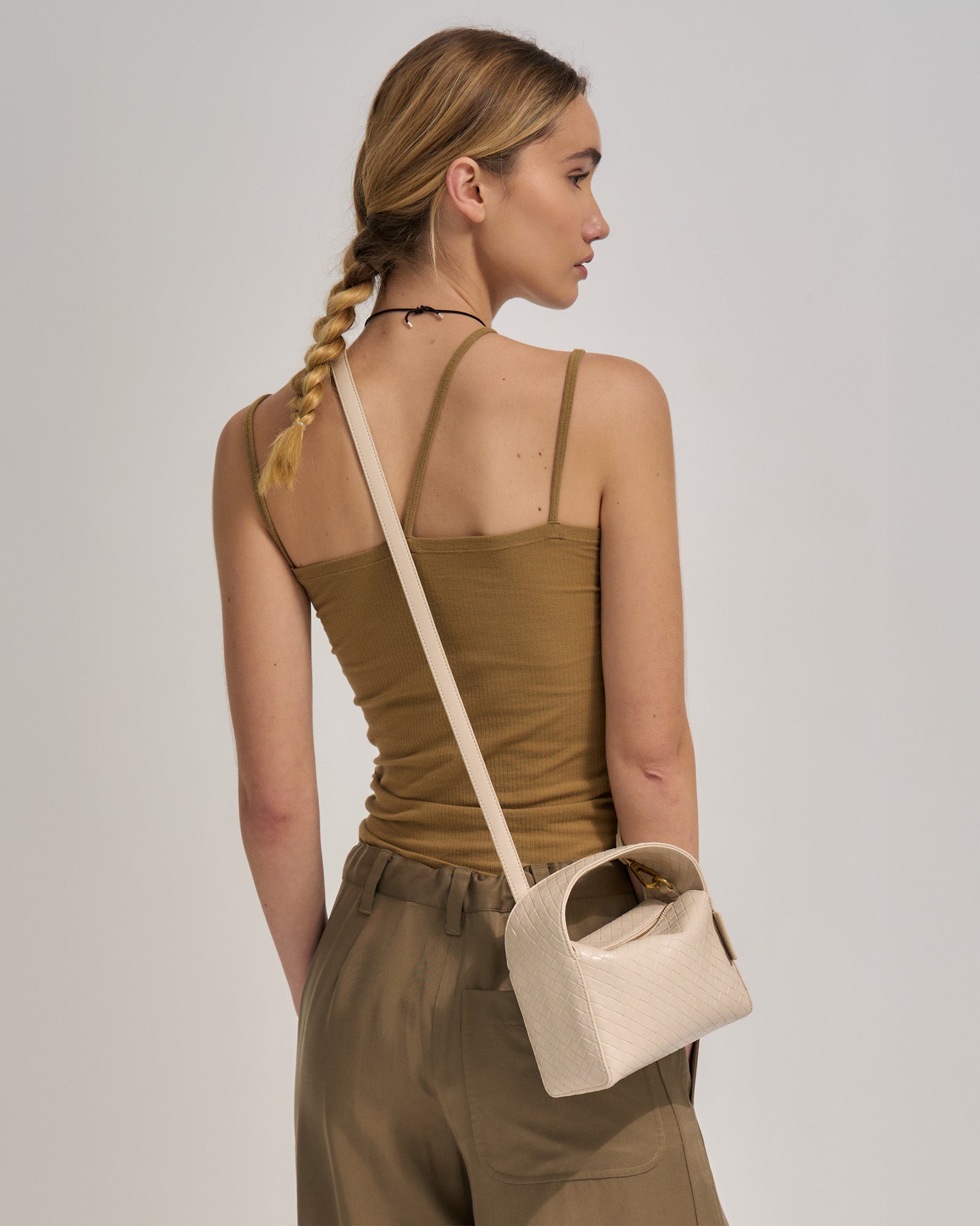 The Luca Mini in Slip reimagines classic woven texture with a modern, structured silhouette. Crafted from Recycled PU with woven emboss, it offers a subtle sheen and a timeless look that pairs easily with both casual and refined outfits. The top handle adds a polished finish, while the removable crossbody strap allows for versatile wear.