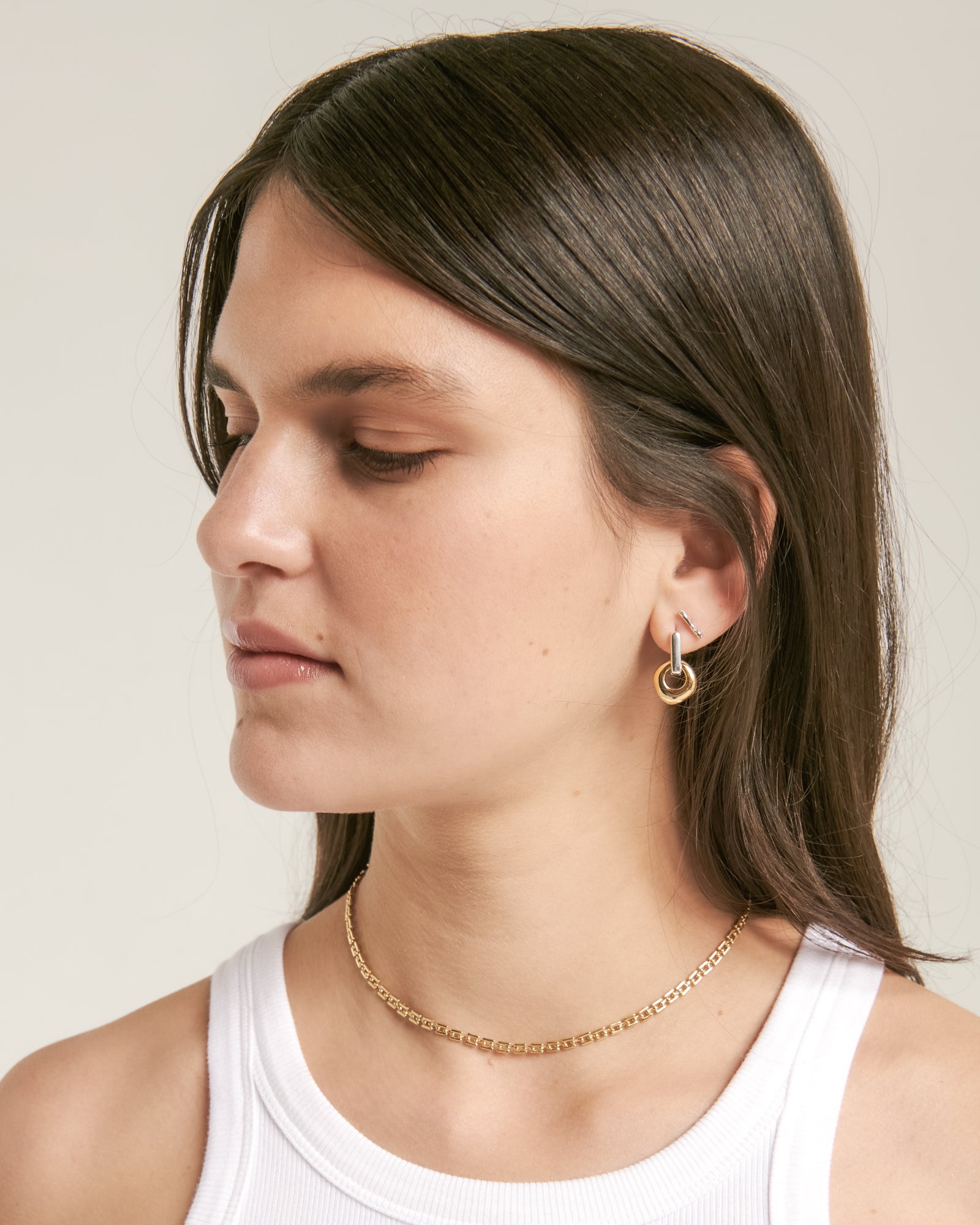 Mini Bloq with Pebble Earring