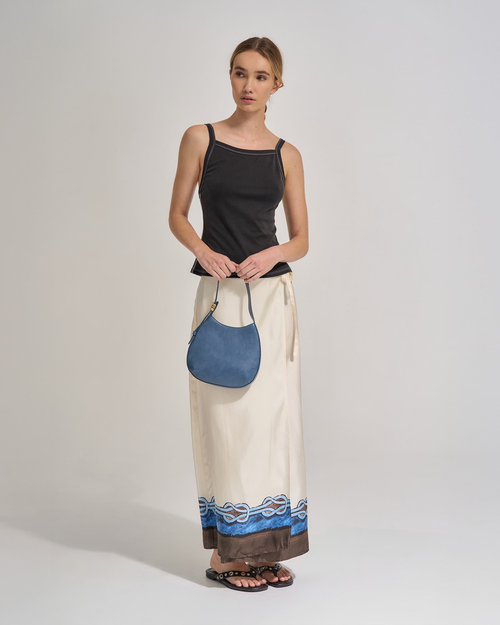 An ode to organic form, the Organica Mini Bag in mid denim. Featuring gentle curves and a sculptural silhouette, this compact piece is thoughtfully crafted for everyday ease.